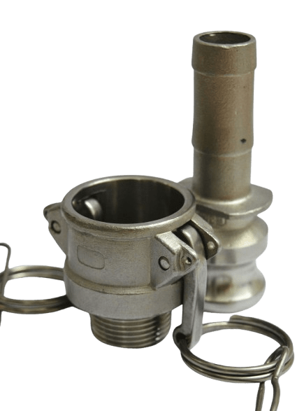 The principle behind the design of cam lock coupling is simple. Cam arms fitted on pivot pins gets locked in the adopter groove, so that when the line pressure attempts to force the cam lock coupler and adopter apart, the bottom edge of the adapter groove pushes with a equal pressure against the under edge of the cam arm increasing the locking action. All the couplings pass through a hydrostatic test of minimum 500 psi ( 35kg/cm2 ).