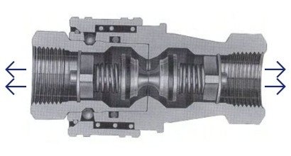 Fluids flows in either direction from coupler or adaptor